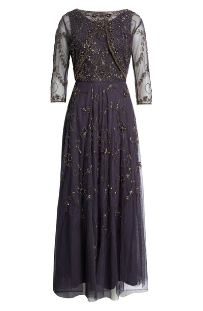 Pisarro Nights Beaded Mesh Gown With Jacket In Eggplant ModeSens