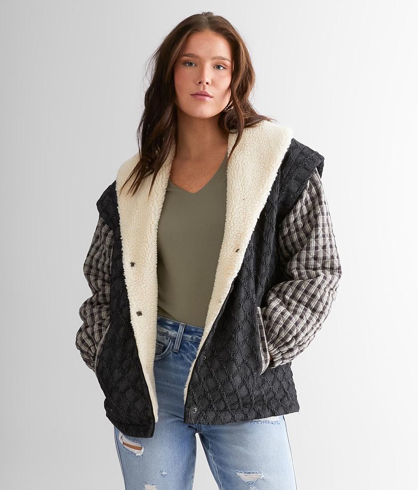 Miss Me Pieced Plaid Jacket Women s Coats Jackets in Charcoal