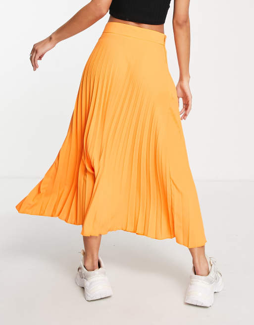 River Island pleated midi skirt in orange