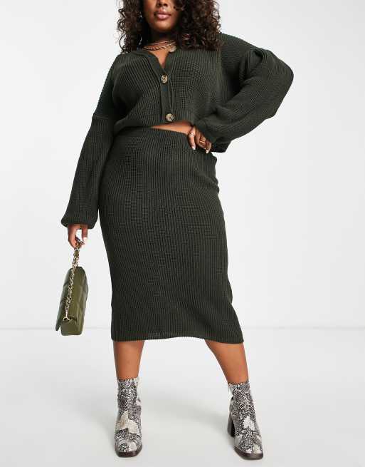 In The Style Plus exclusive knitted midi skirt in khaki ASOS