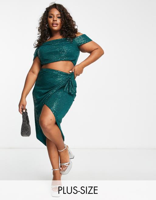 Jaded Rose Plus midi skirt in emerald sequin part of a set
