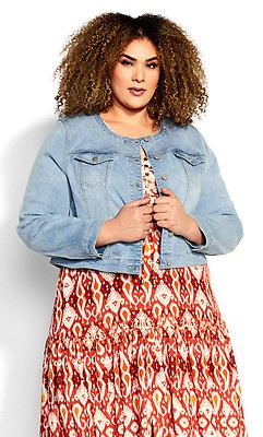 Plus Off Shoulder Zipper Crop Denim Jacket