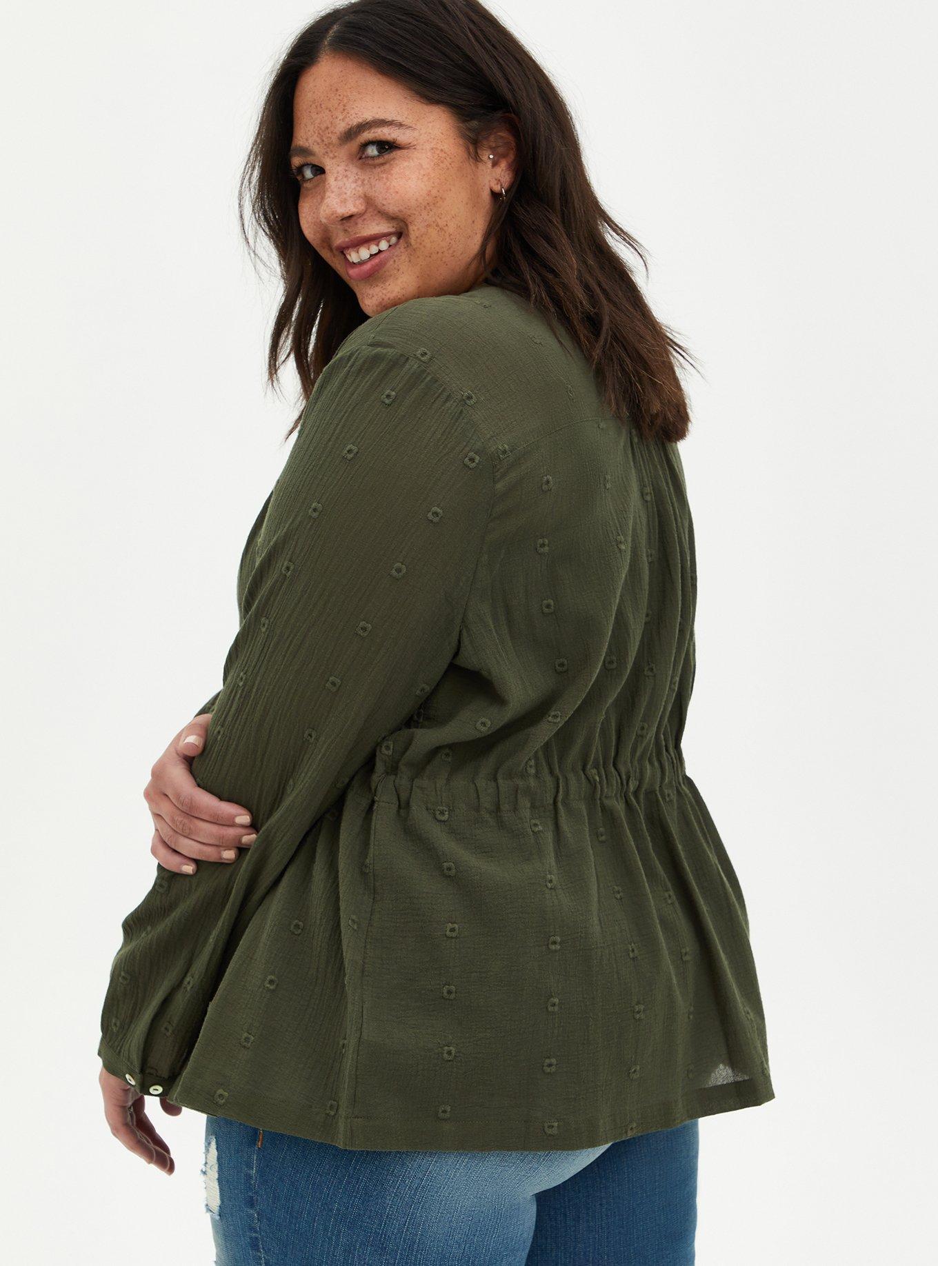 Plus Size Olive Gauze Embroidered Jacket Torrid
