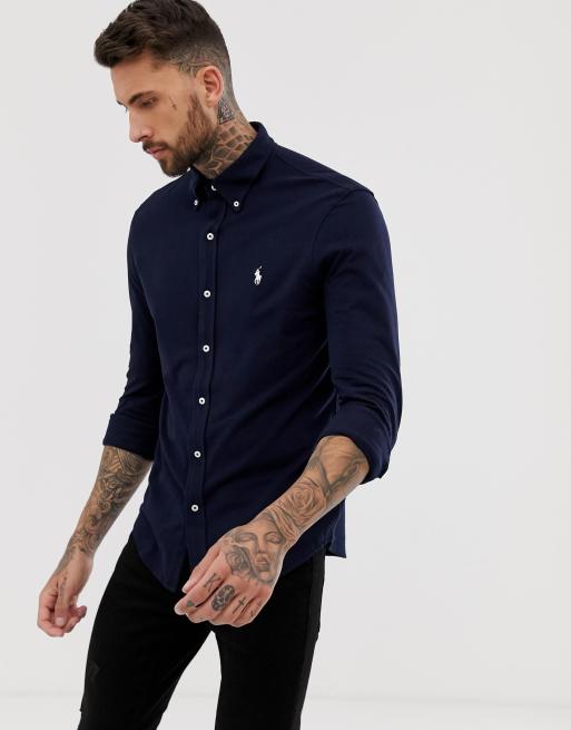 - polo ralph lauren slim fit pique shirt player logo button down in navy