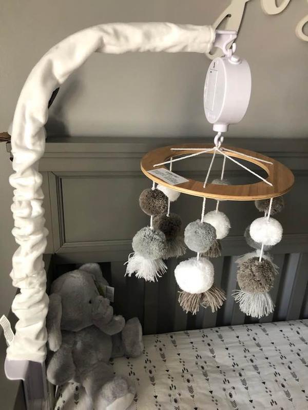 Pom pom crib mobile clearance, Signature Pom Pom Musical Baby Crib Mobile White Gray Lambs Ivy clearance
