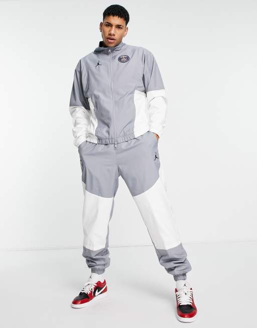 Jordan Paris Saint Germain zip up woven track jacket in grey and white