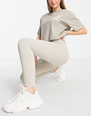 Pull Bear Seamless Ribbed Leggings In Sand neutral ModeSens