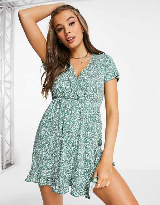 Pull Bear wrap front dress in yellow black floral print ASOS