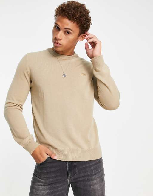Pull beige lacoste clearance, Pull torsad Lacoste col rond en laine et cachemire beige Pull clearance