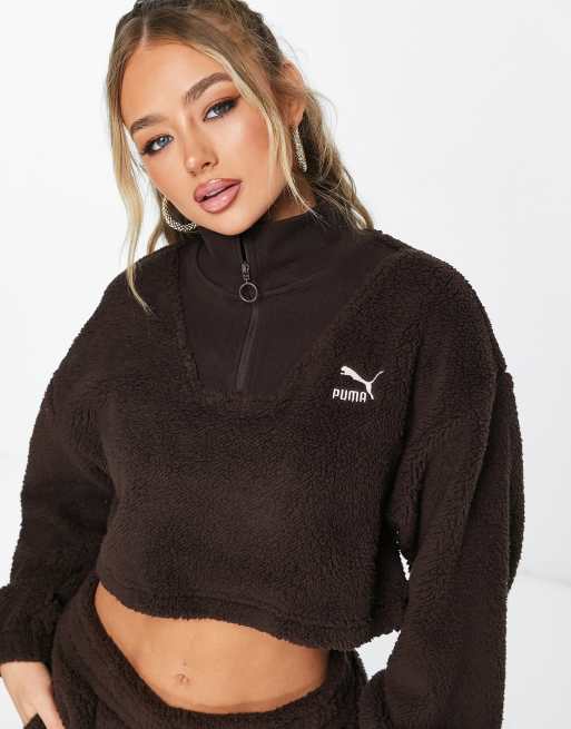 Puma classics borg half zip sweat in chocolate exclusive to ASOS