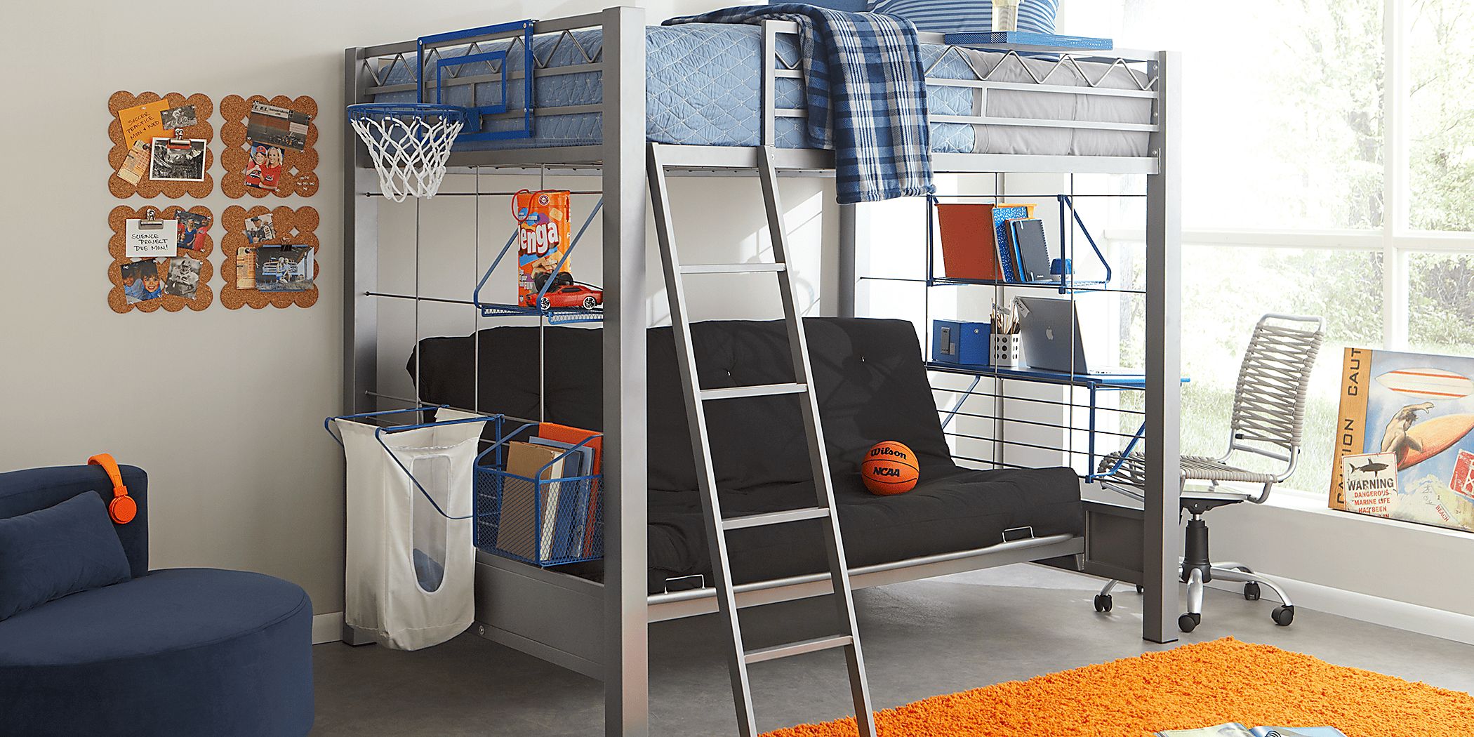 Build a Bunk Gray Full Futon Loft Bed with Blue Accessories
