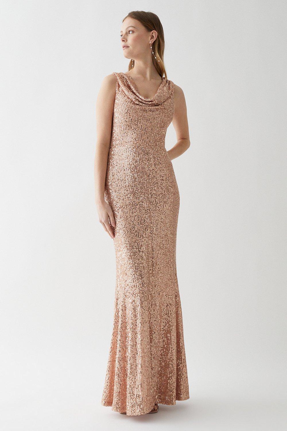 Rose gold dresses yde clearance, Dresses Drape Cowl Neck Sequin Bridesmaid Maxi Dress Coast clearance