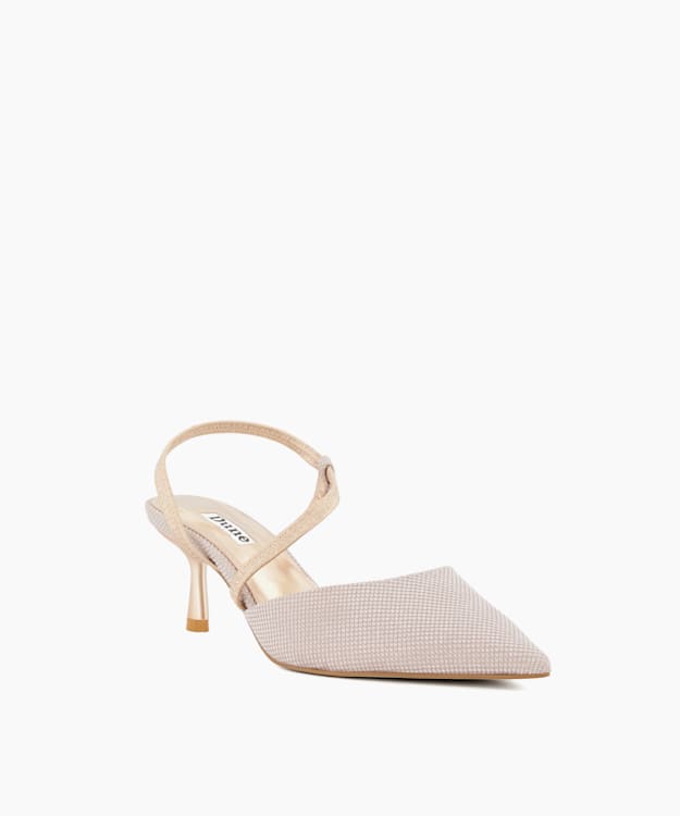 Rose gold pointed shoes clearance, Citrus Rose Gold Matte Flared Heel Court Shoes Dune London clearance