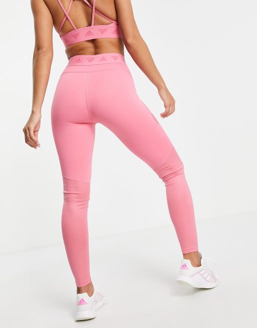 adidas Training leggings with branded waistband in rose pink