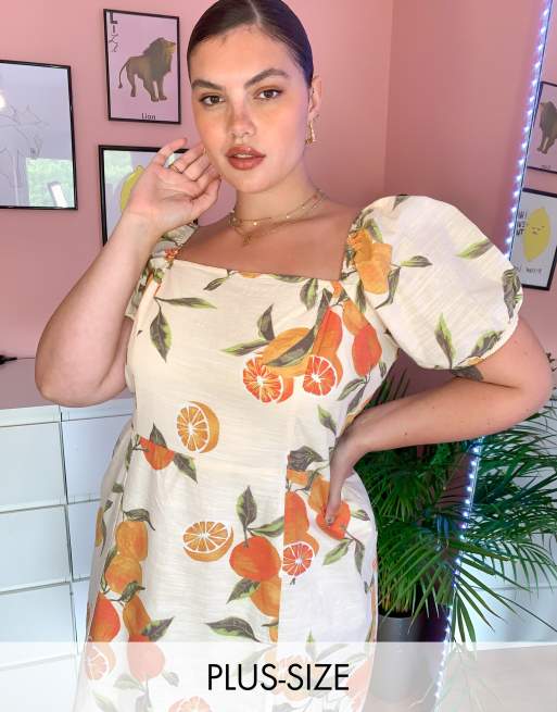 Rose tea dress clearance, Neon Rose Plus mini tea dress in grapefruit print clearance