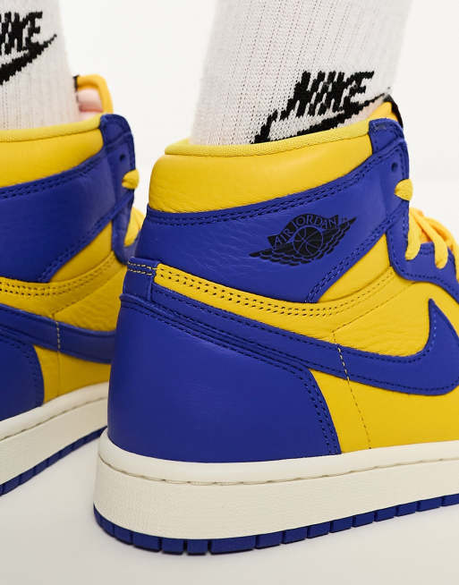 Jordan AJ1 Hi OG trainers in blue and yellow