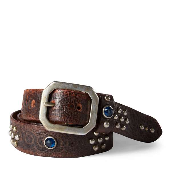 RRL by Ralph Lauren Studded Leather Belt Vintage Black