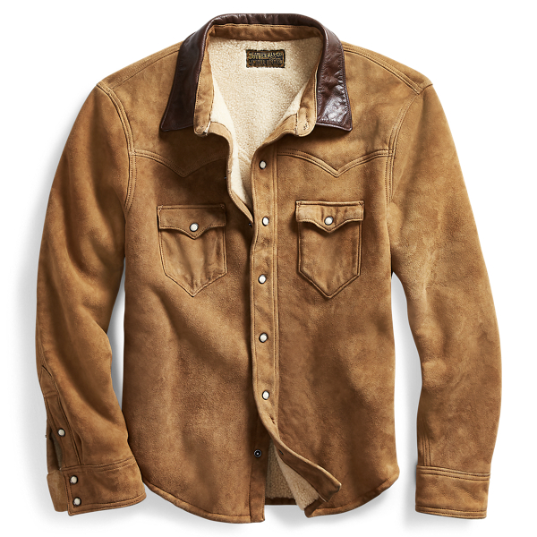 Rrl shearling western shirt jacket clearance, RRL Leather Trim Shearling Coat BROGUE clearance