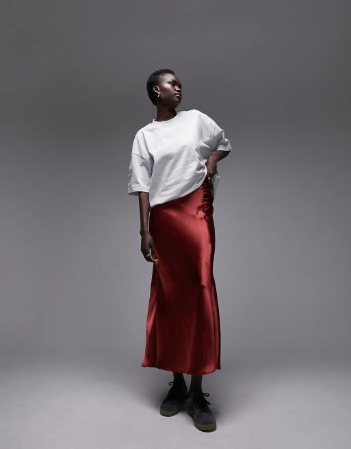 Topshop Tall asymmetric maxi skirt with ruched panel in spice
