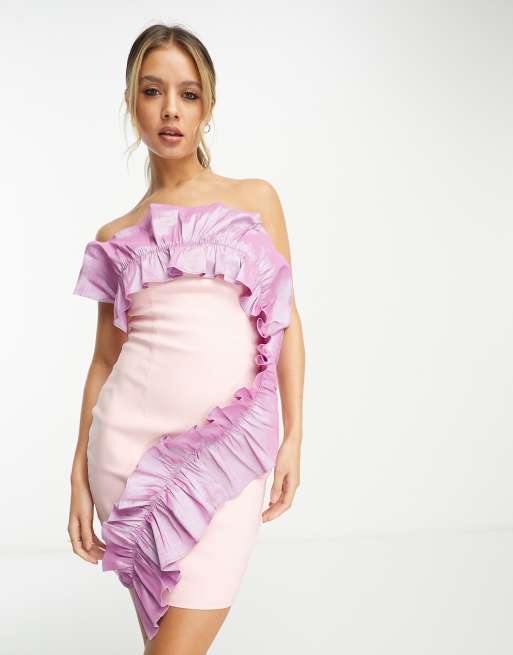 Band Of Stars Premium contrast exaggerated ruffle trim mini dress in pink