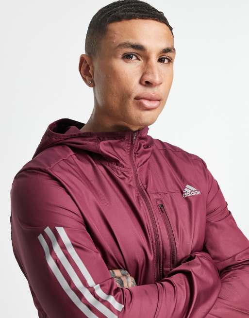 adidas Running track jacket with hood in burgundy