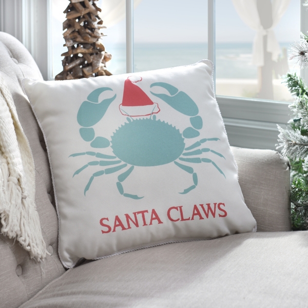 Santa Claws Christmas Pillow Cover Crab Pillow Cover Coastal