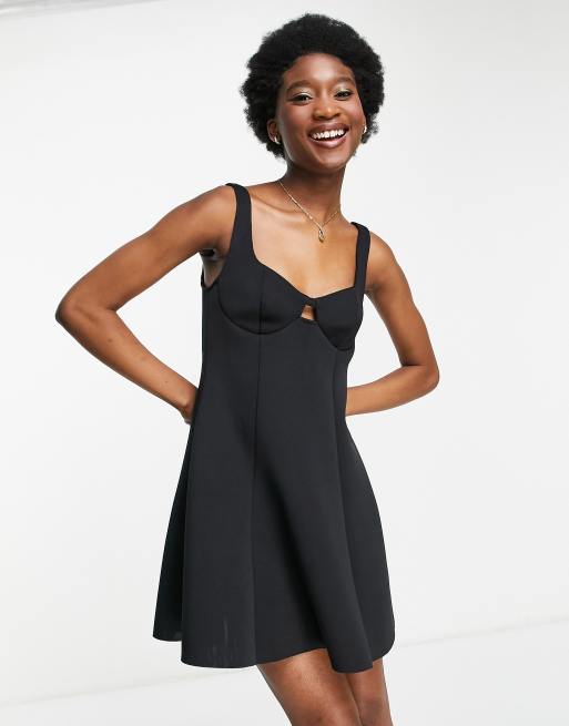 Miss Selfridge scuba fit flare mini dress in black ASOS