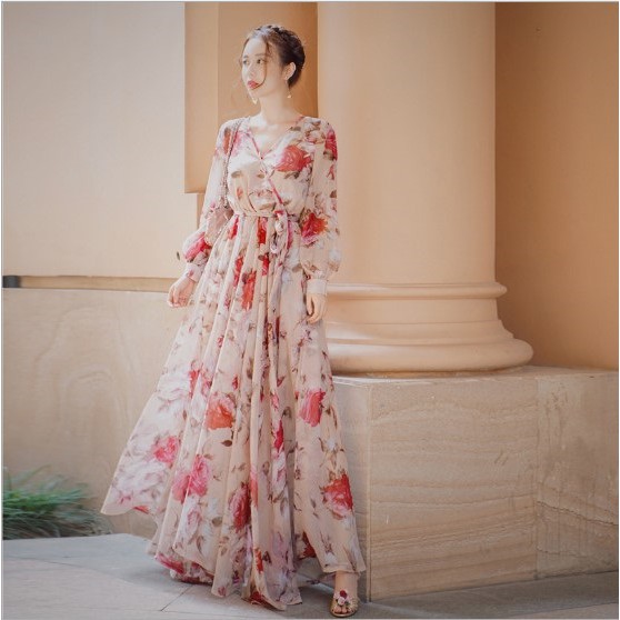 101Korean fashion dresses Floral Long Sleeve Maxi Dress Shopee
