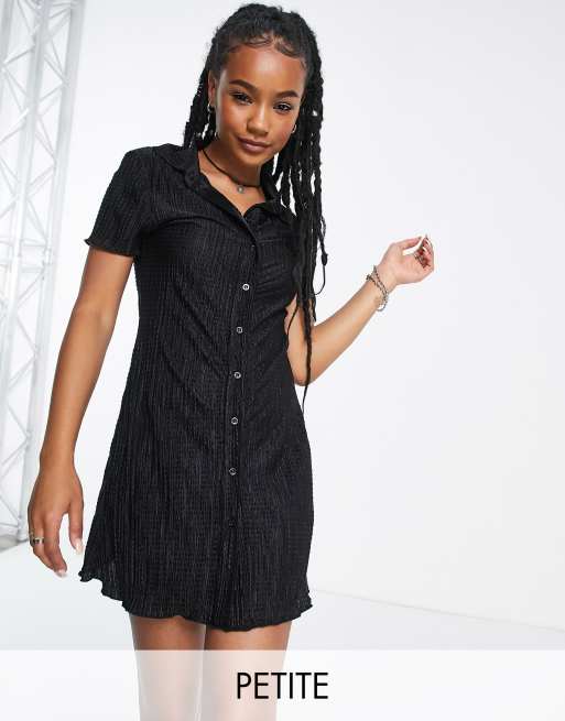 Topshop Petite button down collared textured mini dress in black