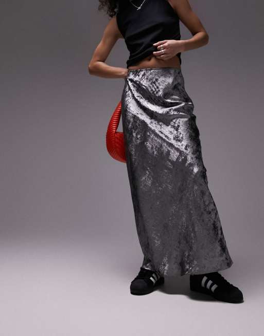 Topshop metallic maxi skirt in silver ASOS