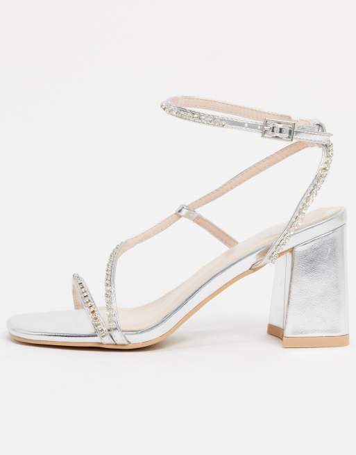 BEBO strappy mid block heeled sandals in silver ASOS
