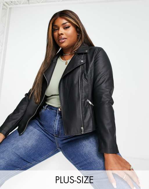Simply Be faux leather biker jacket in black ASOS