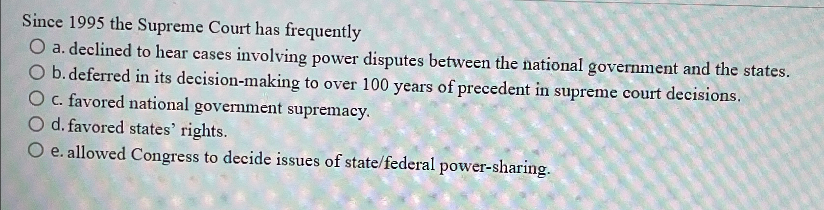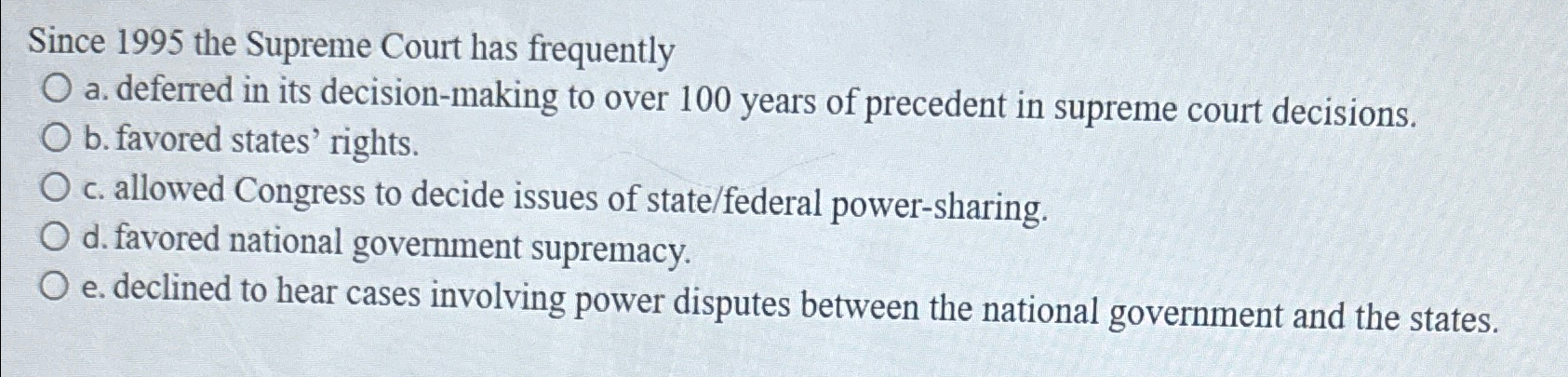 Solved Since 1995 the Supreme Court has frequentlya. Chegg