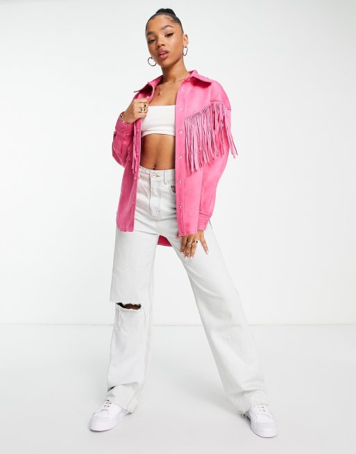 Stradivarius Motocross Miami Pink And White Faux Leather Jacket