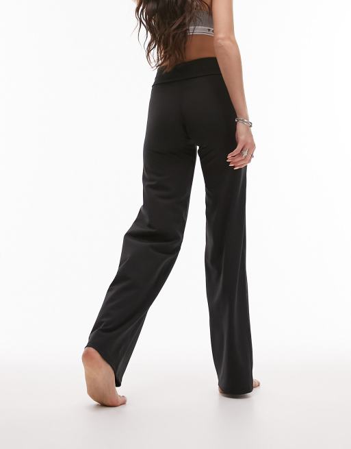 Topshop fold over waist yoga straight leg pants in black ASOS