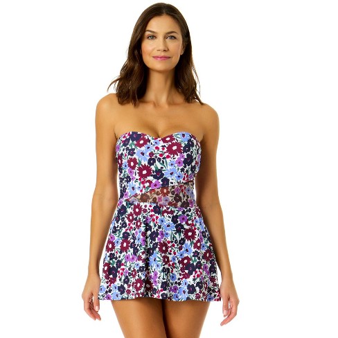 Anne Cole Women s Meadow Bouquet Strapless Mesh Insert Swim Dress
