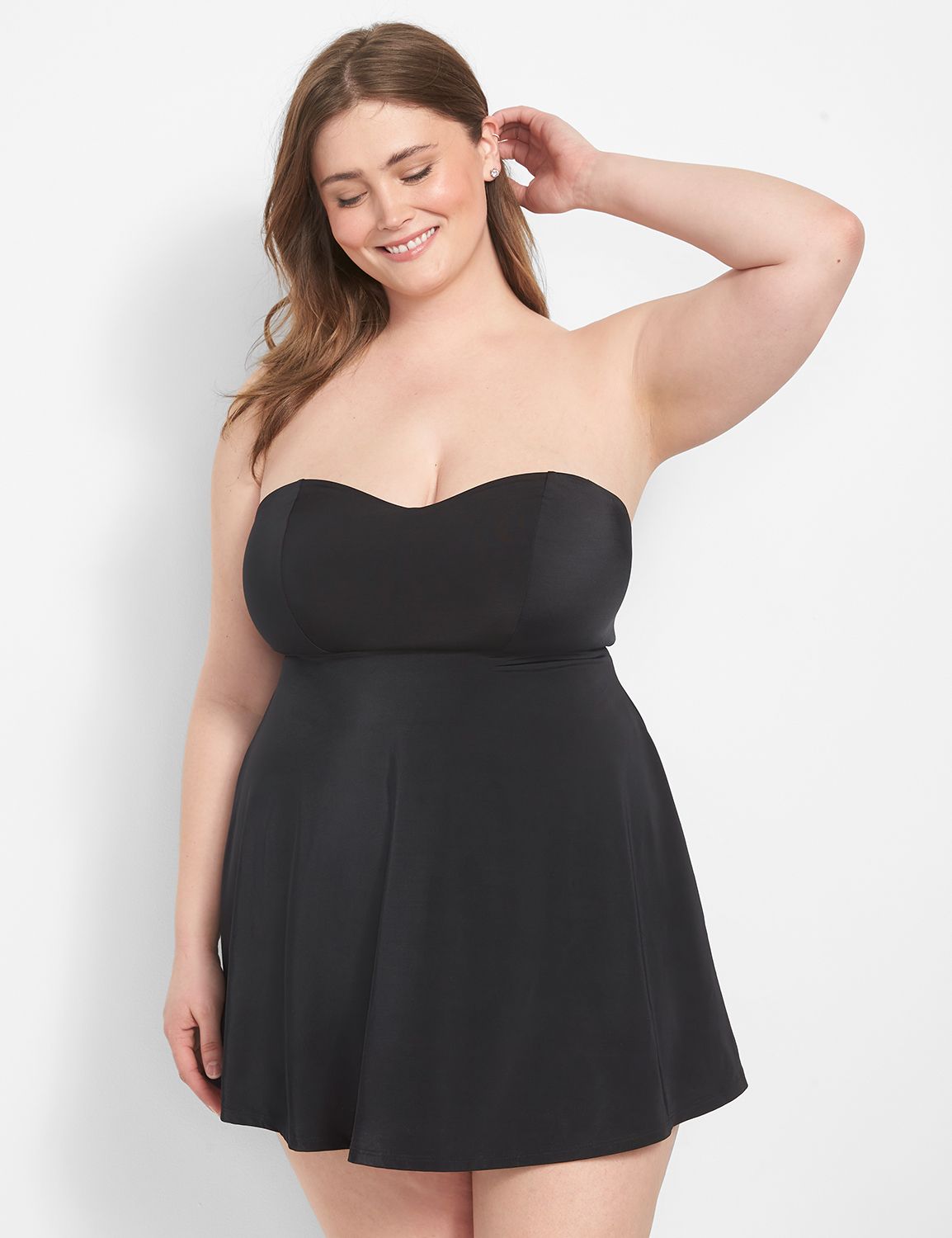 Solid Bandeau Princess Seam Swim Dress One Piece Plus Size