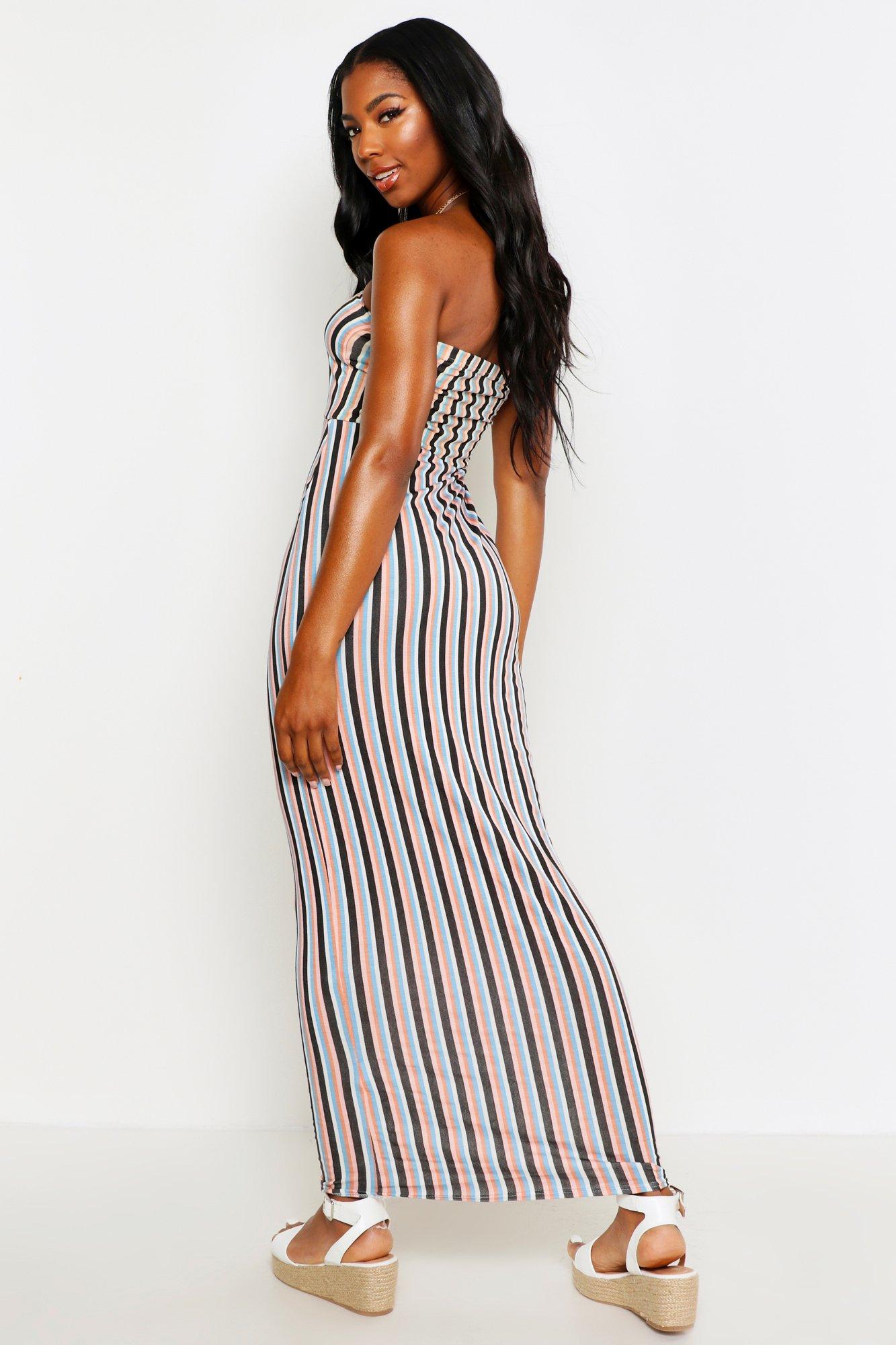 Women s Striped Bandeau Maxi Dress Boohoo UK