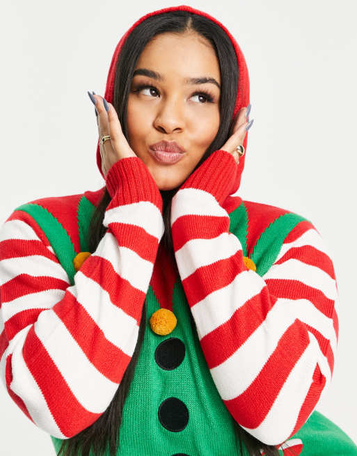 Brave Soul Plus elf christmas sweater dress with hood ASOS