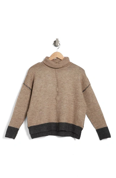 Sweet Romeo Oversize Colorblock Turtleneck Sweater In Latte