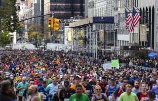 T shirt marathon de new york clearance, Marathon de New York Avec les fronti res ferm es des milliers clearance