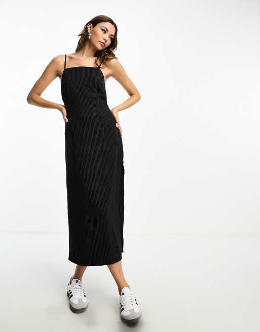 Italian Structured Satin Strappy Tailored Maxi Dress Karen