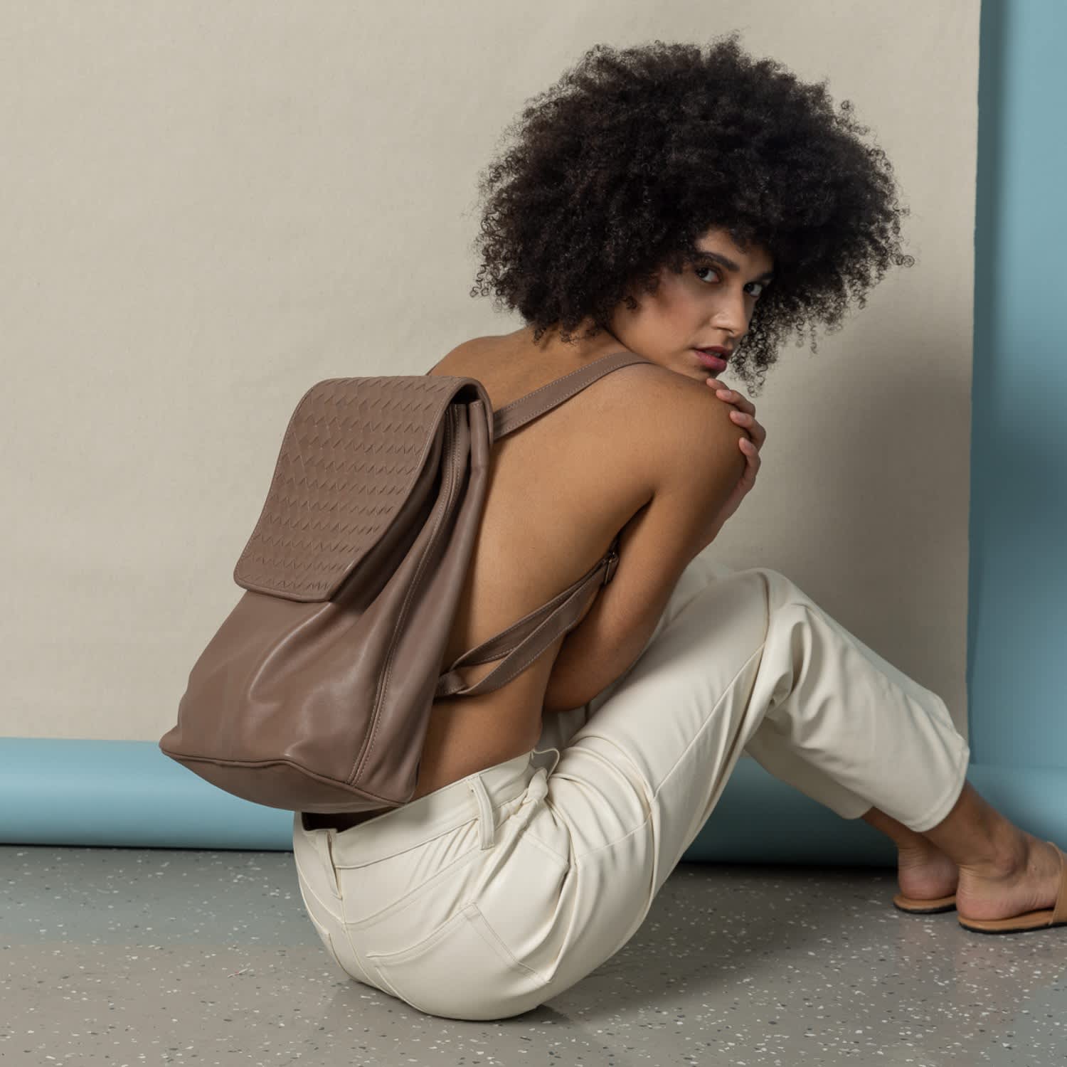 - taupe leather backpack