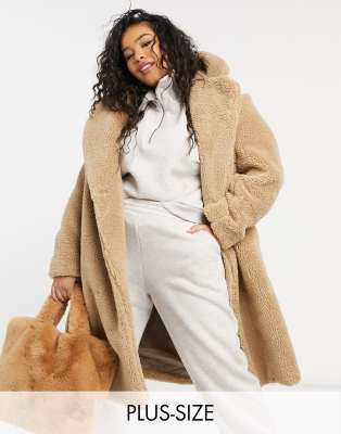 Teddy coat black new look clearance, New Look Plus New Look Curve Longline Teddy Sherpa Coat In Stone clearance