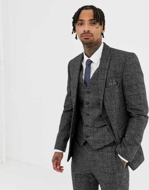 Harry Brown Textured Slim Fit Gray Check Suit Jacket