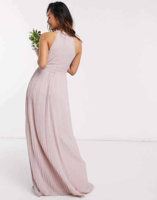 - tfnc bridesmaid exclusive pleated maxi dress in pearl pink