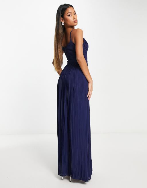 TFNC Bridesmaid pleated wrap front maxi dress in navy blue