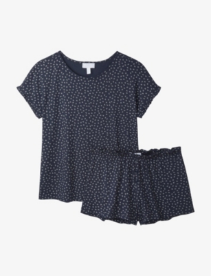 The White Company Womens Navy Ditsy print Shortie Stretch jersey