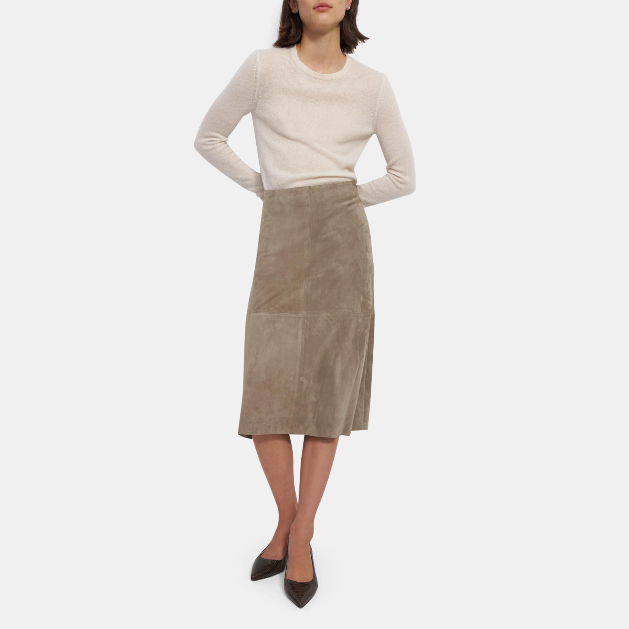 Theory Soft Lamb Suede Volume Skirt Neiman Marcus