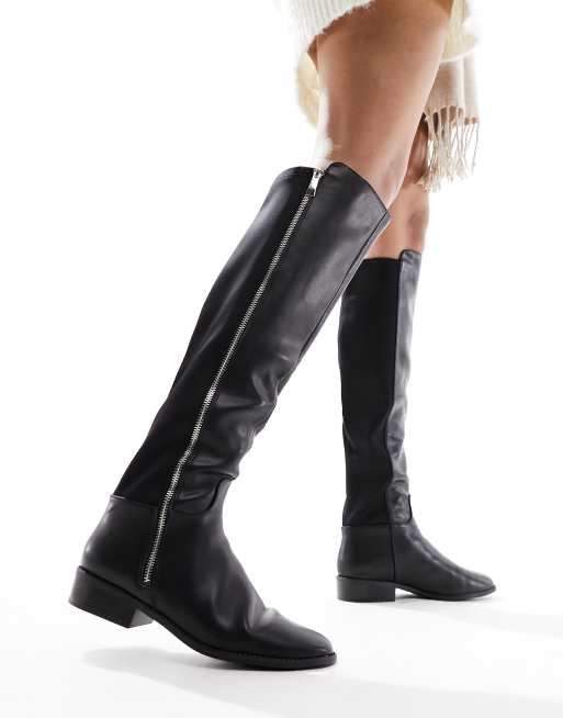 ALDO Byssa over the knee flat boot in black leather ASOS
